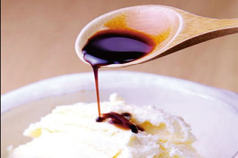 黒みつをかけたバニラアイス。お食事の後の口直しにピッタリのデザートです。